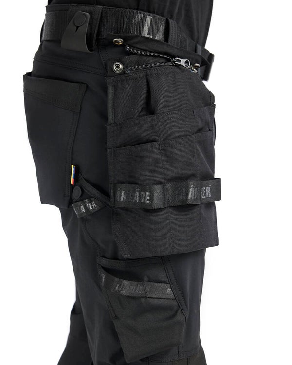 Met CORDURA®-versterkte gereedschapszakken, achterzakken, duimstokzak, dijbeenzakken, knieën en achterkant broekspijpopening, CORDURA®-stretch versterkte kniezakken