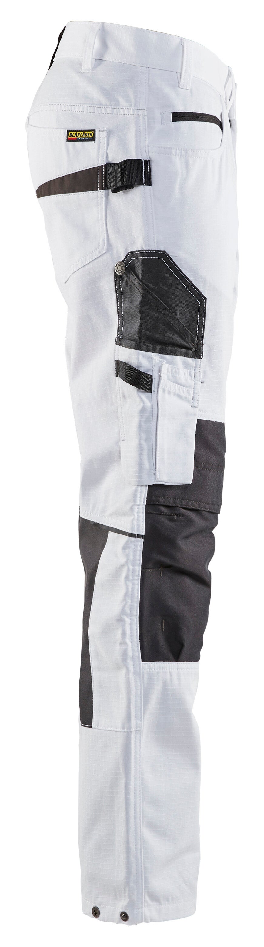 Stijlvol ontworpen werkbroek, extreem slijtvast maar toch lichtgewicht en flexibel. Het materiaal is een lichtgewicht rip-stop met goede scheur- en slijtweerstand. Het model heeft stretchpanelen in het kruis, op de knie en de kuit voor maximale flexibiliteit. De top-loading kniezakken van CORDURA®-stretchstof, met stretchmateriaal zowel aan de binnen- als de buitenkant, zorgen voor een meer ergonomische pasvorm. De broek heeft een CORDURA® versterkte zak voor het plamuurmes, een meszak, discrete reflecterende details en in de beenzak een telefoonzakje van mesh.