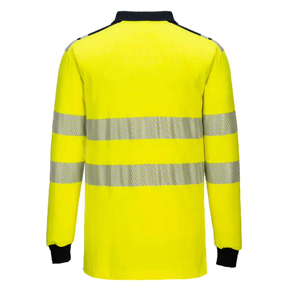 Dit poloshirt is gemaakt van lichtgewicht modacryl doek en biedt uitstekende bewegingsvrijheid dankzij het gesegmenteerde tape-ontwerp. Lichtgewicht en stijlvol. Dit poloshirt met lange mouwen is de perfecte keuze om de drager goed zichtbaar te laten zijn en goed te beschermen bij gevaarlijke situaties. Voorzien van een lus aan de sluiting, ideaal voor het bevestigen van oa. brillen of pennen.