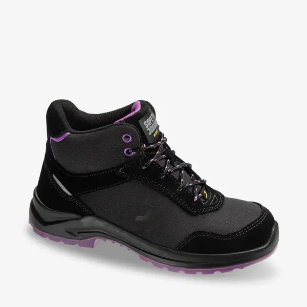 Stalen bescherming, WAW-prestaties. De BOTANIC S1P middelhoge veiligheidsschoen is speciaal ontworpen voor vrouwen en biedt de perfecte balans tussen veiligheid, comfort en stijl. Gemaakt om zware industriële omgevingen te weerstaan, beschikt deze schoen over een robuuste stalen neus en tussenzool voor maximale bescherming tegen vallende, rollende of scherpe voorwerpen. De non-marking buitenzool is bestand tegen olie en brandstoffen, terwijl de speciale laddergrip en hoge slipweerstand extra veiligheid bieden op ladders en gladde ondergronden. Dankzij de ESD-certificering beschermt deze schoen tegen elektrostatische ontlading. Het ademende ontwerp houdt je voeten fris en comfortabel. Ideaal voor werkzaamheden in assemblage, de automobielsector, logistiek en de lichte industrie, zowel in droge als natte omgevingen.